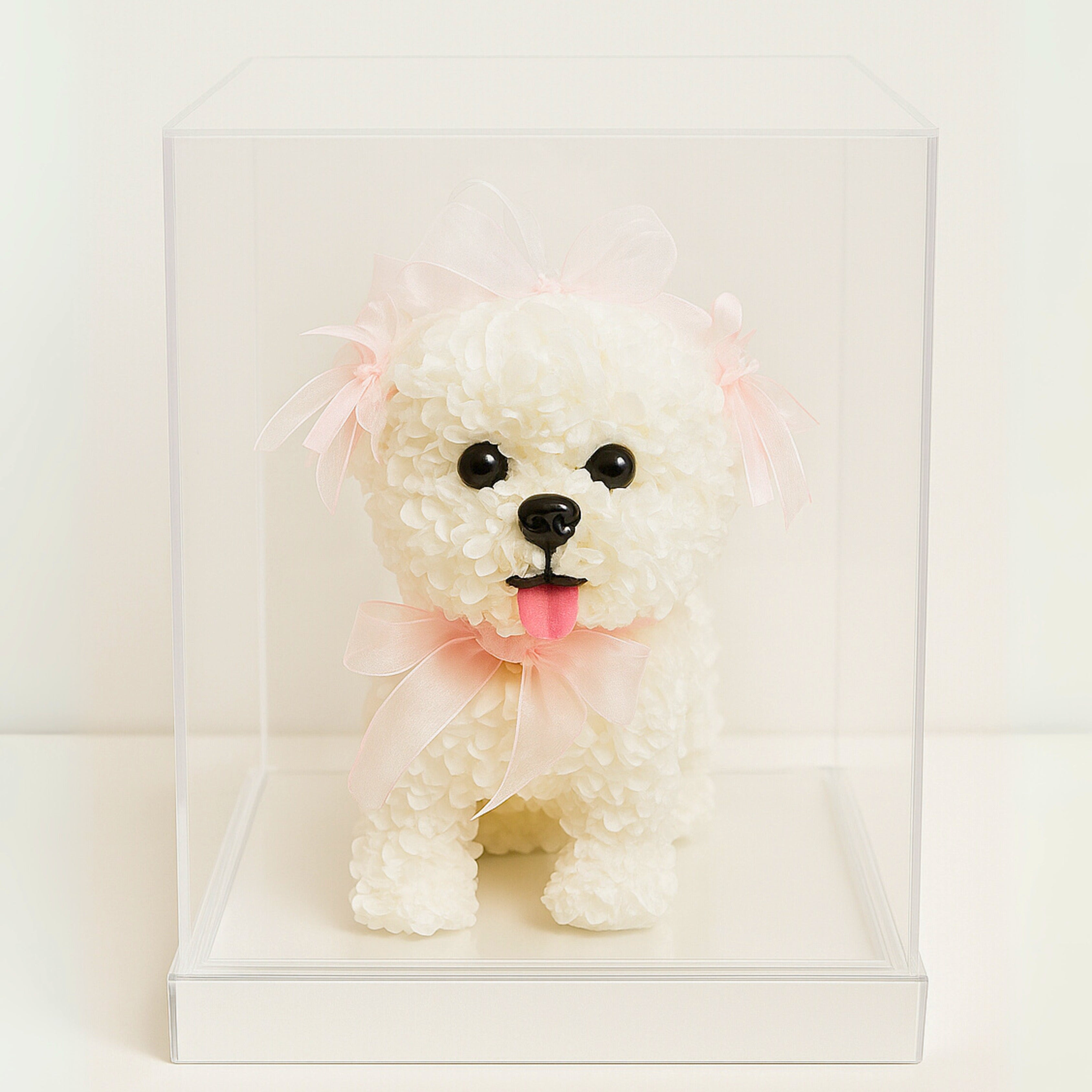 Handcrafted from premium everlasting roses, this charming dog-shaped arrangement represents loyalty, affection, and everlasting beauty.