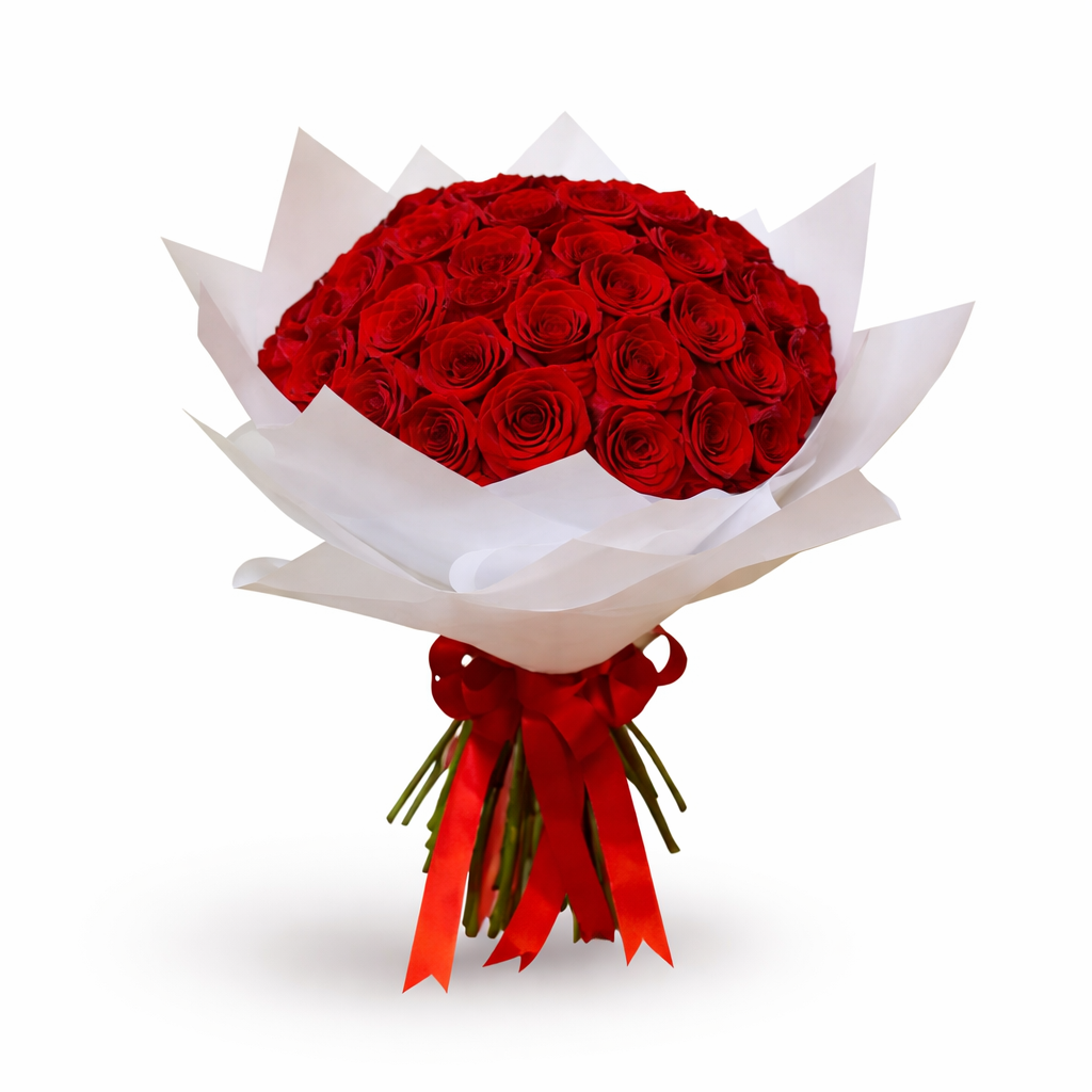 Red Love Roses Wrapped in White is a timeless expression of romance, elegance, and deep affection. Crafted with premium long-stem red roses, Red Love Roses Wrapped in White is designed to impress with its luxurious presentation and rich symbolism. The contrast of vibrant red blooms and soft white wrapping gives Red Love Roses Wrapped in White a refined and romantic appeal, perfect for meaningful moments.